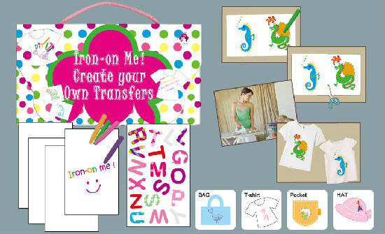 This "Iron-on Me" kit combines 4 sheets blank iron on paper and one sheet glitter transfer and 4 crayons with instructions you can follow to create your own customized any other piece of fabric into DIY wearable art. Simply by using a blank transfer paper, you can follow the instructions and use the tools contained in this kit to realize your own illustrations onto garments which you can proudly wear.