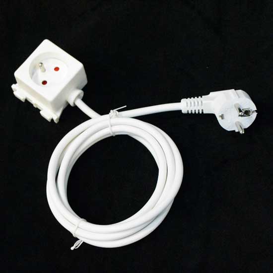 As shown is an ironing-board socket coming with a long extension wire. The socket comes with a 2-pin plug for high compatibility. This socket provides flexible applications for household use.