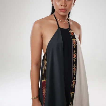 JESSLYN CRYSTALIAJC/SS/TBD/TTThree-toned backless dress with Sabu weaving for a cultural twist.