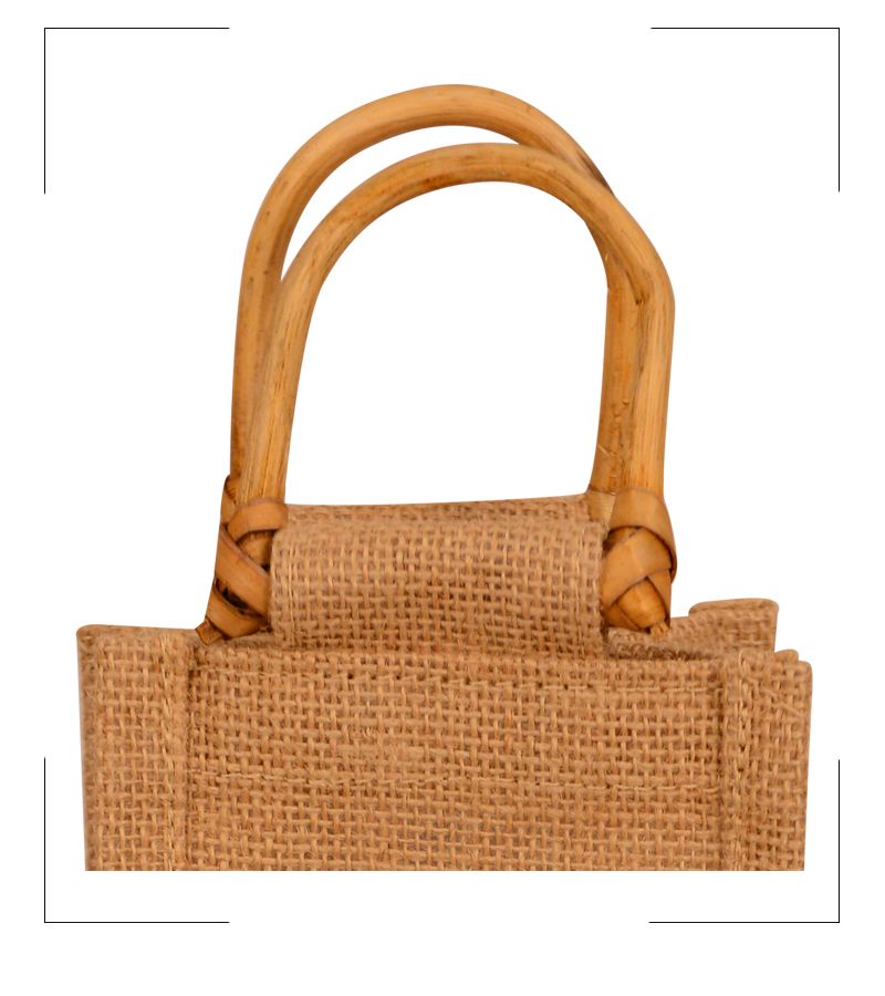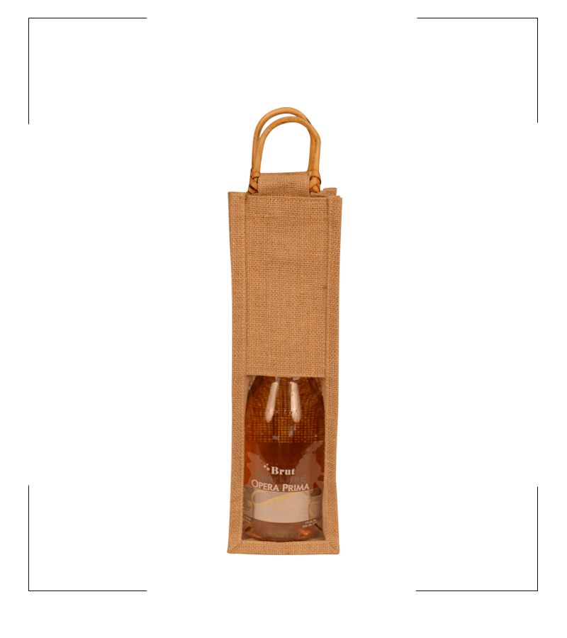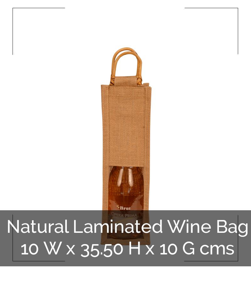 Natural Laminated Jute with PVC Attached 1 Bottle Bag & Cane Handles.