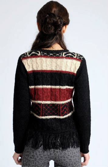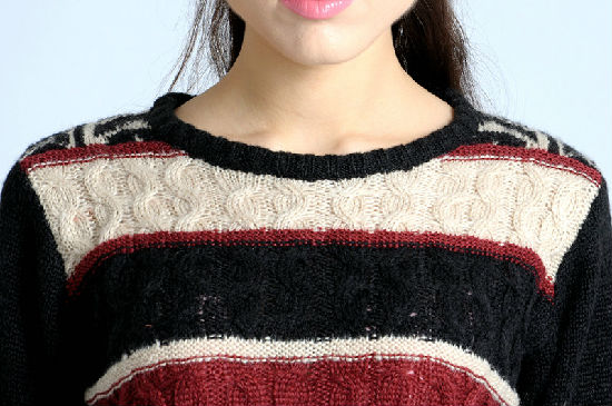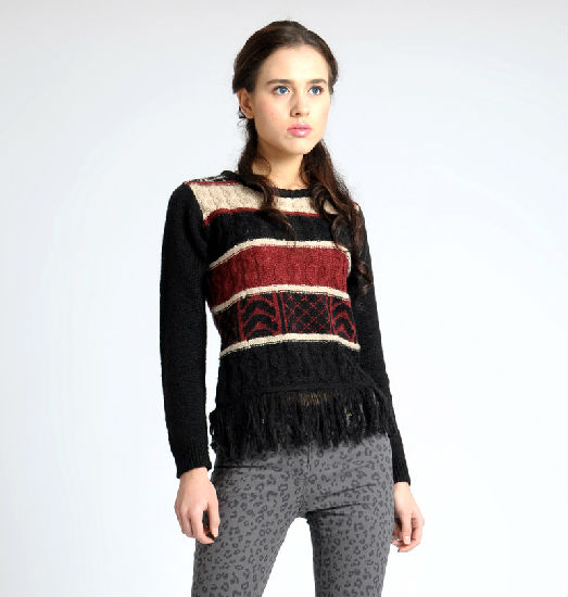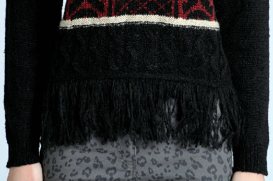This pictured jacquard pullover is constructed of 80% acrylic and 20% mohair for luxurious warmth. The hemline is accented with tassel for added style. This long-sleeved jacquard pullover goes well with tight jeans.