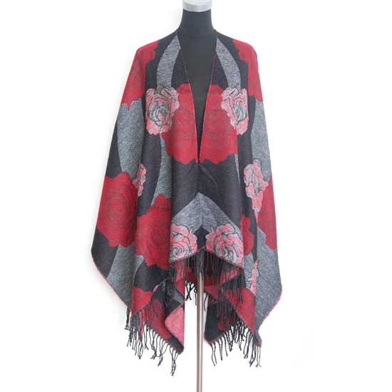 This is a shawl that comes with colorful jacquard patterns. Made of a melange of polyester and acrylic, this shawl is light and soft, with a wool-like texture. This jacquard shawl is great on cold days.