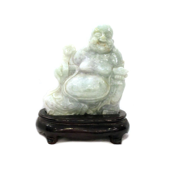 This is a jade carving of a Buddha. It boasts a vivid and lifelike appearance. This jade carving is finely carved of high-quality jade material with exquisite details.