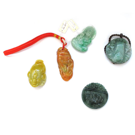 This series of jade pendants exhibits delicate craftsmanship. The elaborately carved patterns come in a wide variety for you to choose from. These elegant, oriental pendants can be used in necklaces.