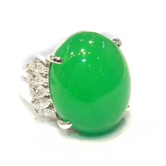The fabulous ring impresses you with the striking jade. The surrounding diamond accents offer lasting glamor. This scintillating ladies' ring makes a timeless expression of luxury.