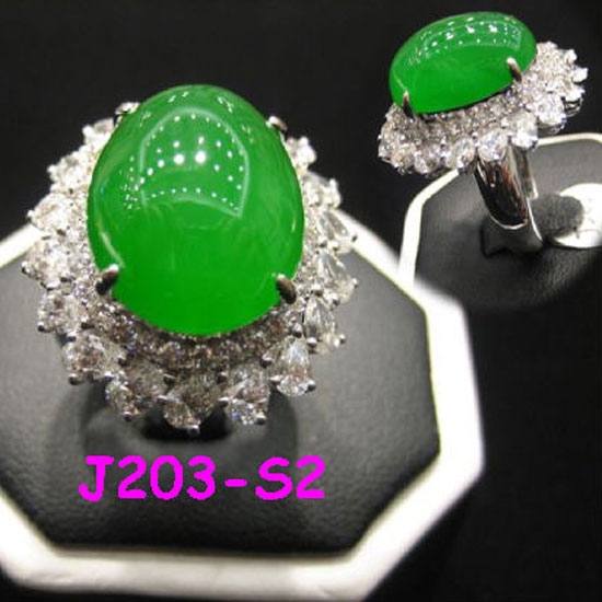 This fascinating ring centers a massive green jade, surrounded by sparkling accents. The ring is carefully crafted and polished for a captivating look. This jade ring is sure to wrap your finger with grace and style.