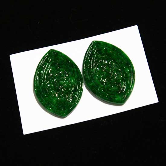 The jade stones showcase a consistent green hue, which is one of the main elements to classify them as top-grade emerald. They are finely cut into exquisite teardrop shapes. The high-luster structures make them ravishing pieces of jewelry for ladies of different ages. These dainty jade stones are exceptional to be pendants for necklaces and earrings.