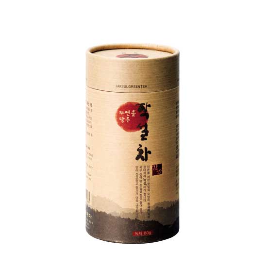 This is a can of premium-quality Jaksul Green tea. The tender shoots are organically cultivated and harvested from Jangsung Tea Estate. Established in 1965, this tea estate has been officially certified as organic by both the Korea government and the USDA. Multiple grades of organic green tea, as well as powdered green tea, are harvested at different times, offering a variety of aroma and flavors that define each cup.