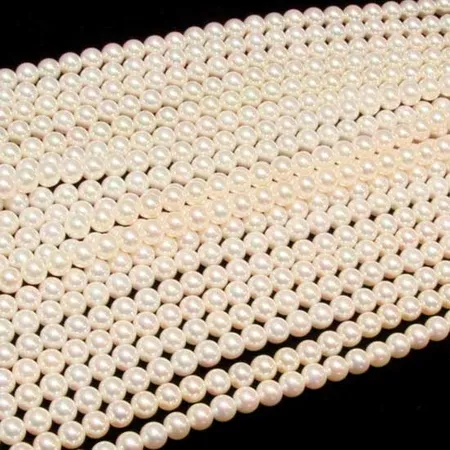 Presented here is a strand of Japanese Akoya pearls. They feature a round shape with a polished finish. The beautiful Japanese Akoya pearls go great with different jewelry, including necklaces and bracelets.