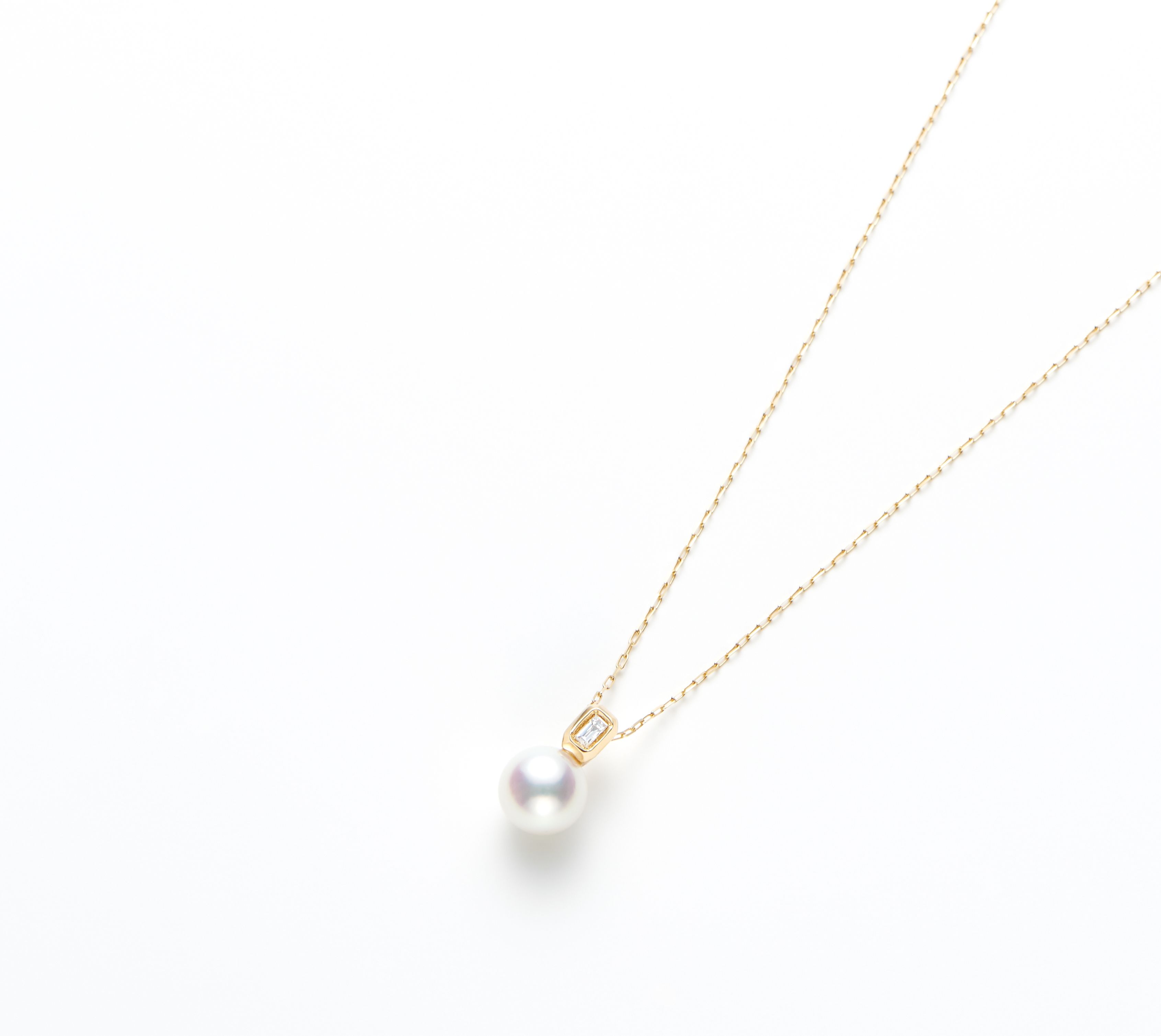 The feature is to use Untreated Natural Color & Koshimono Akoya pearls.