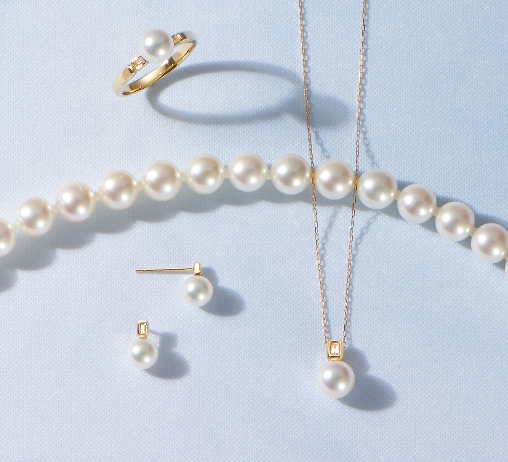 The feature is to use Untreated Natural Color & Koshimono Akoya pearls.