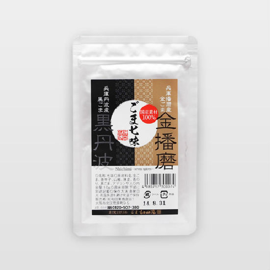 The mixture of sesame and shichimi (seven kind spices) with sesame as the main composition of the product, it makes our shichimi tastier than general shichimi. This concept, mixing sesame with shichimi is our original concept and thera are no other company produce the same product. And also we did not use any chemical food additive to enrich the flavour of our product.