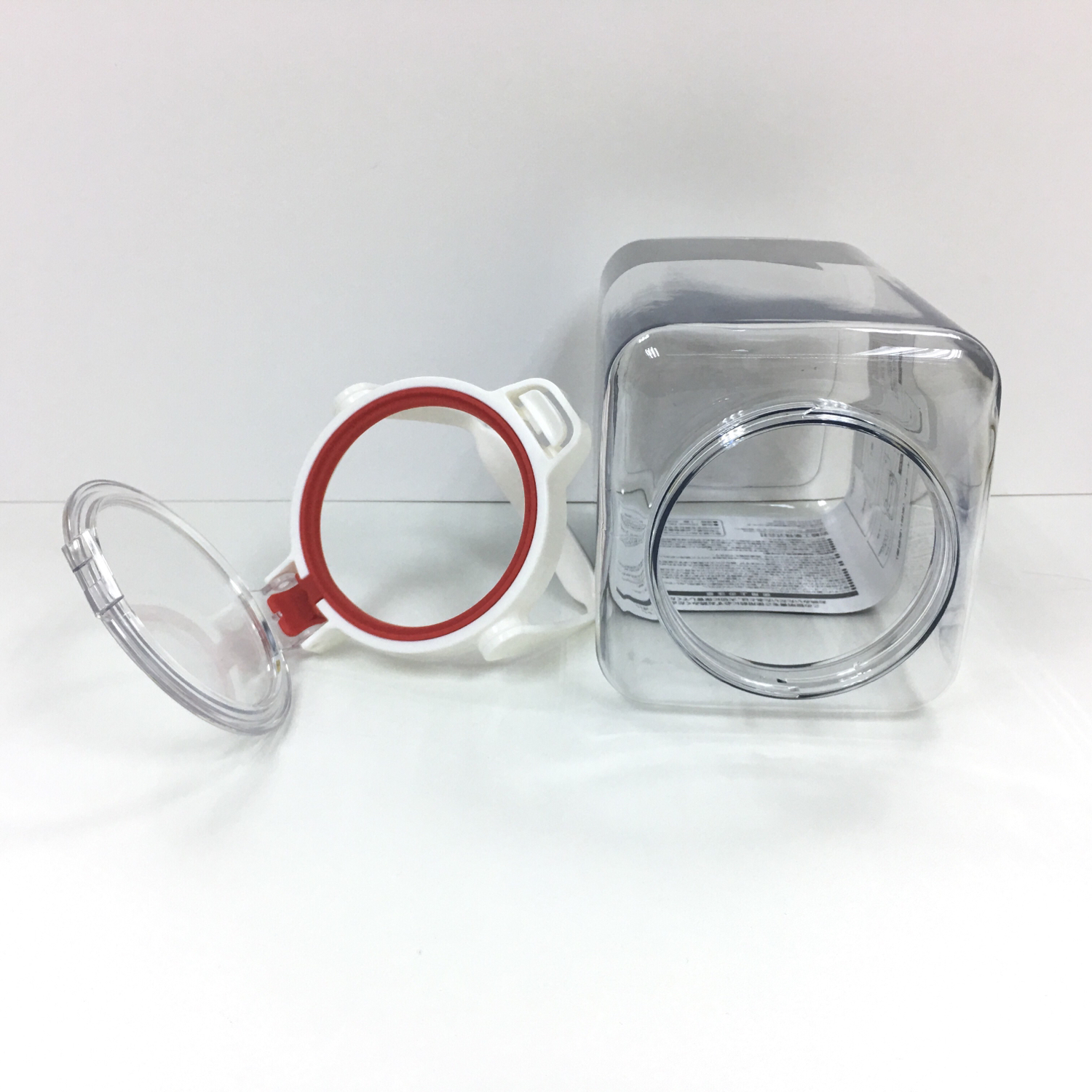 Fill this AS resin jar with rice, flower dried bonito and other preserved food for practical storage in the kitchen. The see-through quadrangular body details a round twisting lid with flipping top, featuring a petite handle to ease carry.