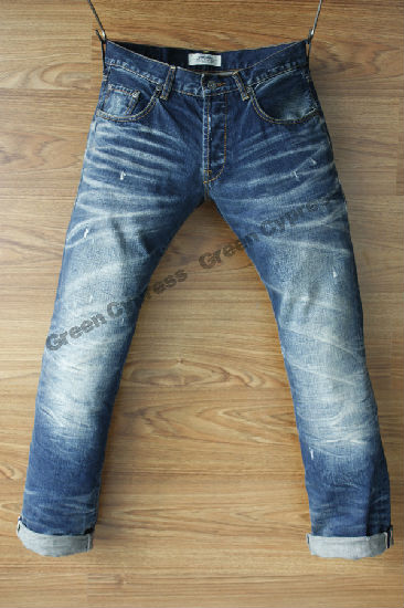 Style yourself up with this pair of straight cut long pants. The pair of blue jeans fits at the waist and neatly extends through the thigh and leg, thus providing excellent comfort. Other features include belt loops, zipper fly and a single-button closure. Whiskering and fading give these fetching jeans a lived-in look. This pair of long pants is a great fit for all body types.