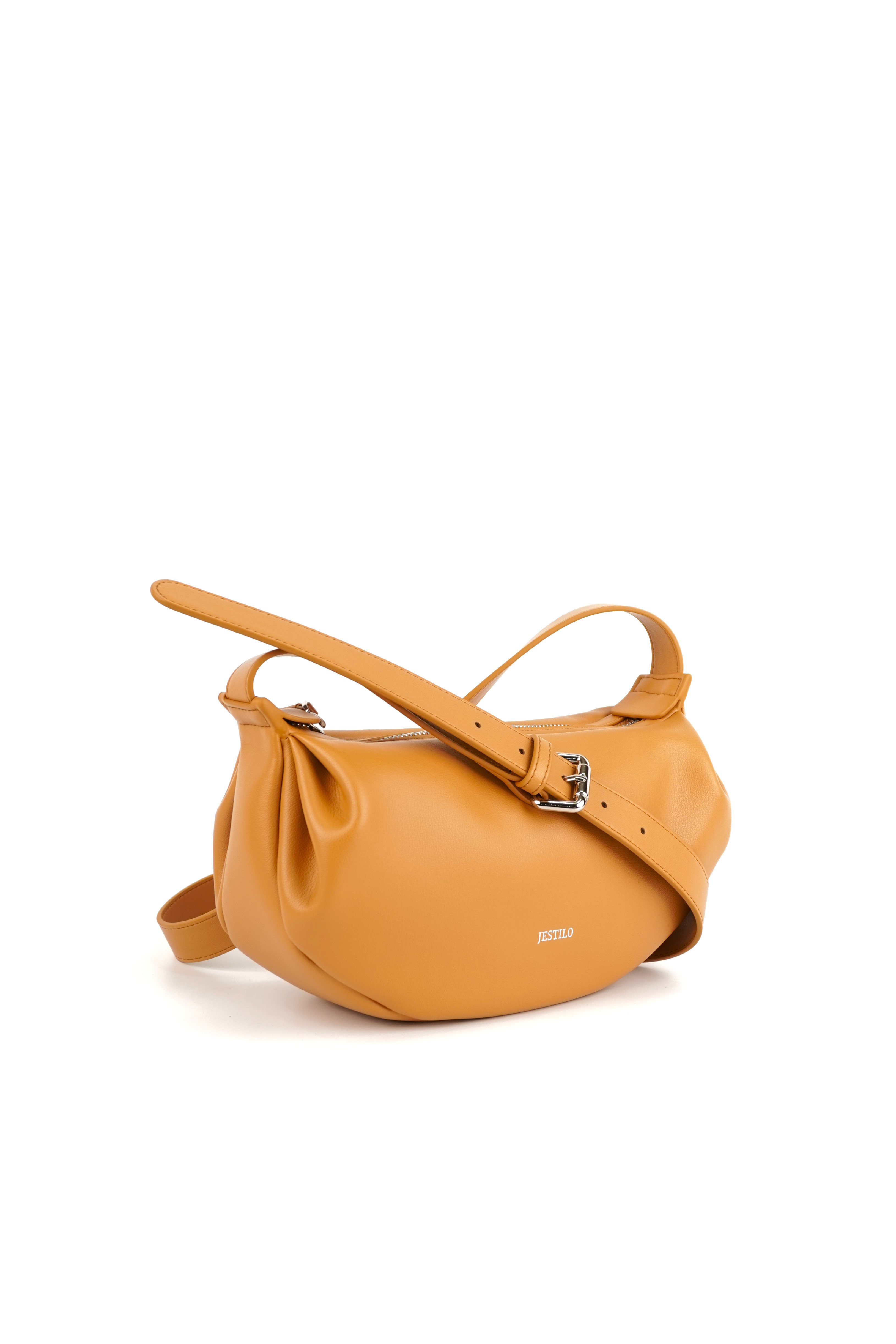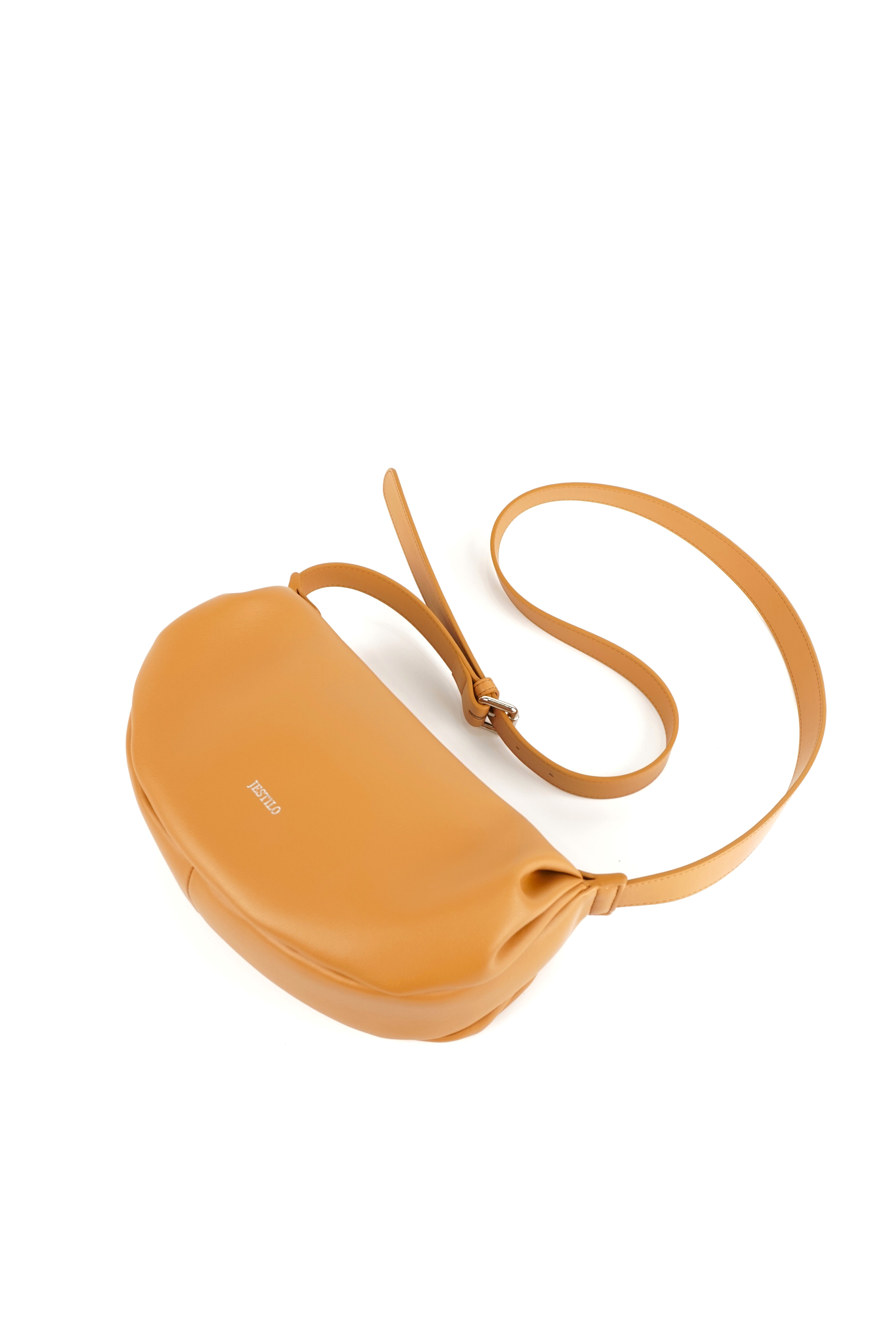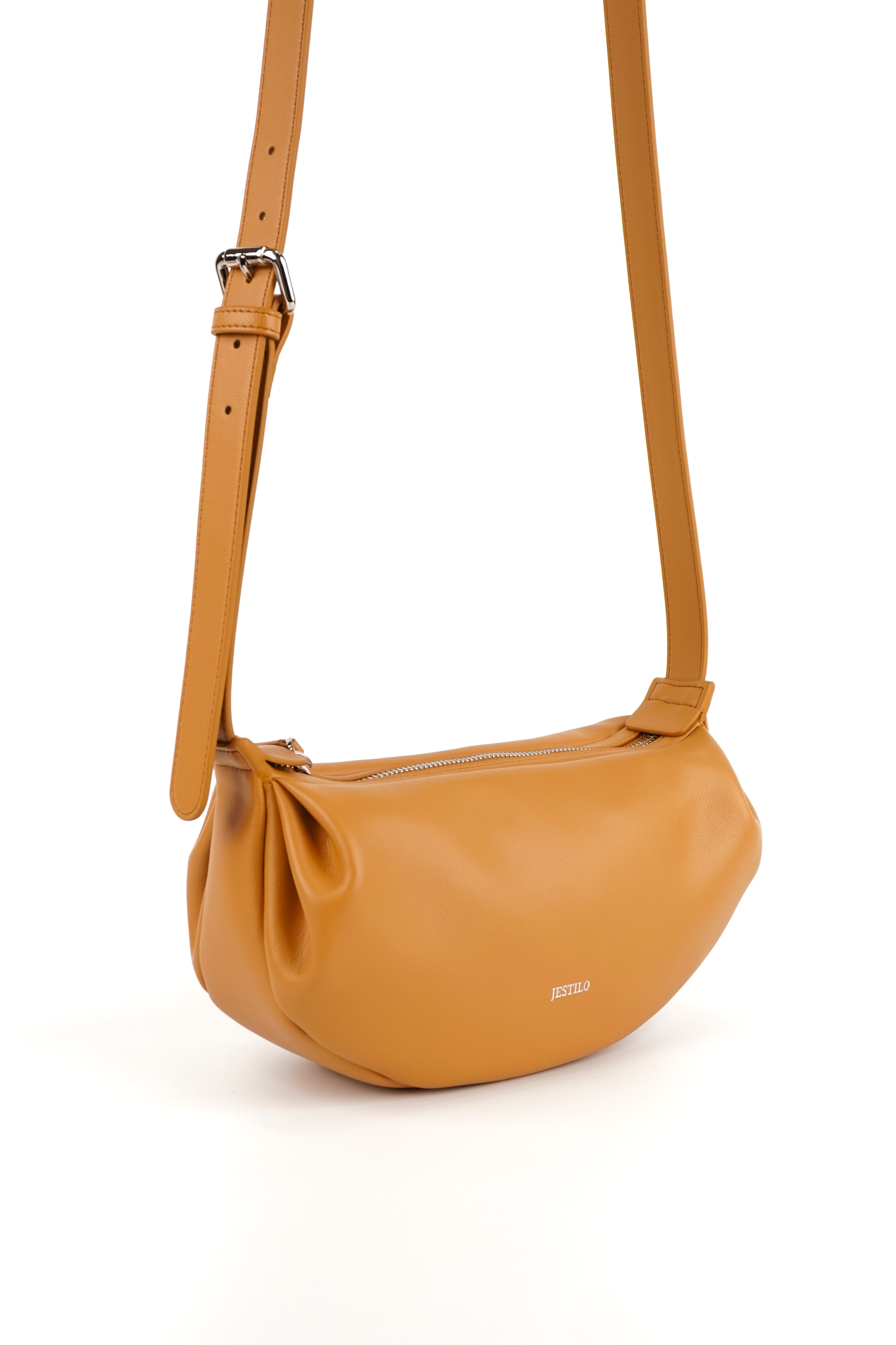 This warm crossbody bag is crafted from smooth, supple cowhide leather, featuring a soft crescent silhouette that adds a relaxed, modern touch to any outfit. The top zipper closure keeps your essentials secure, while the adjustable leather strap allows for a customized, comfortable fit—perfect for all-day wear. Delicate pleated details at the sides lend a gentle, casual charm, and the minimalist branding keeps the focus on the bag’s sleek, timeless design. Ideal for everyday use or casual outings, it balances functionality with effortless style.