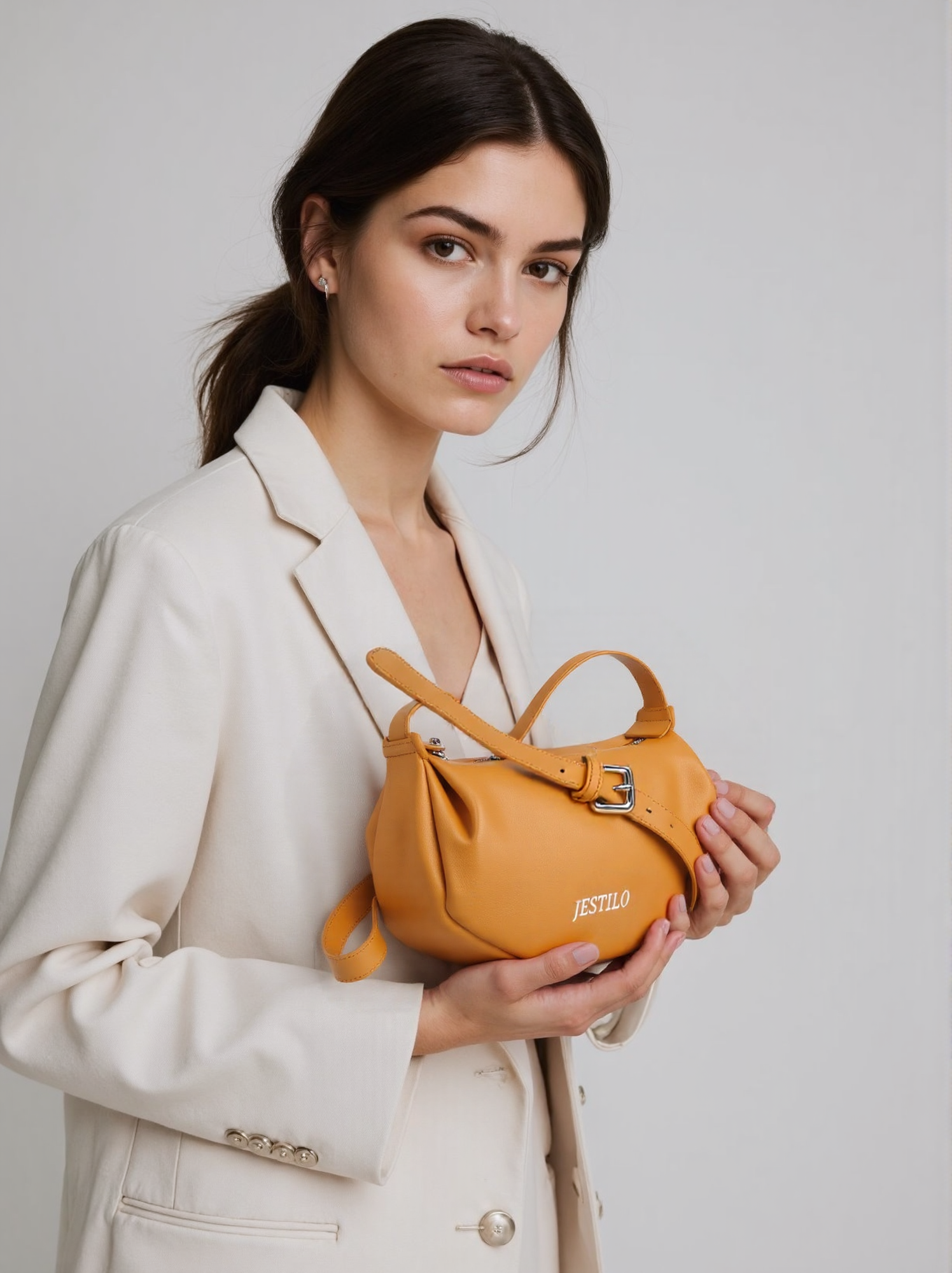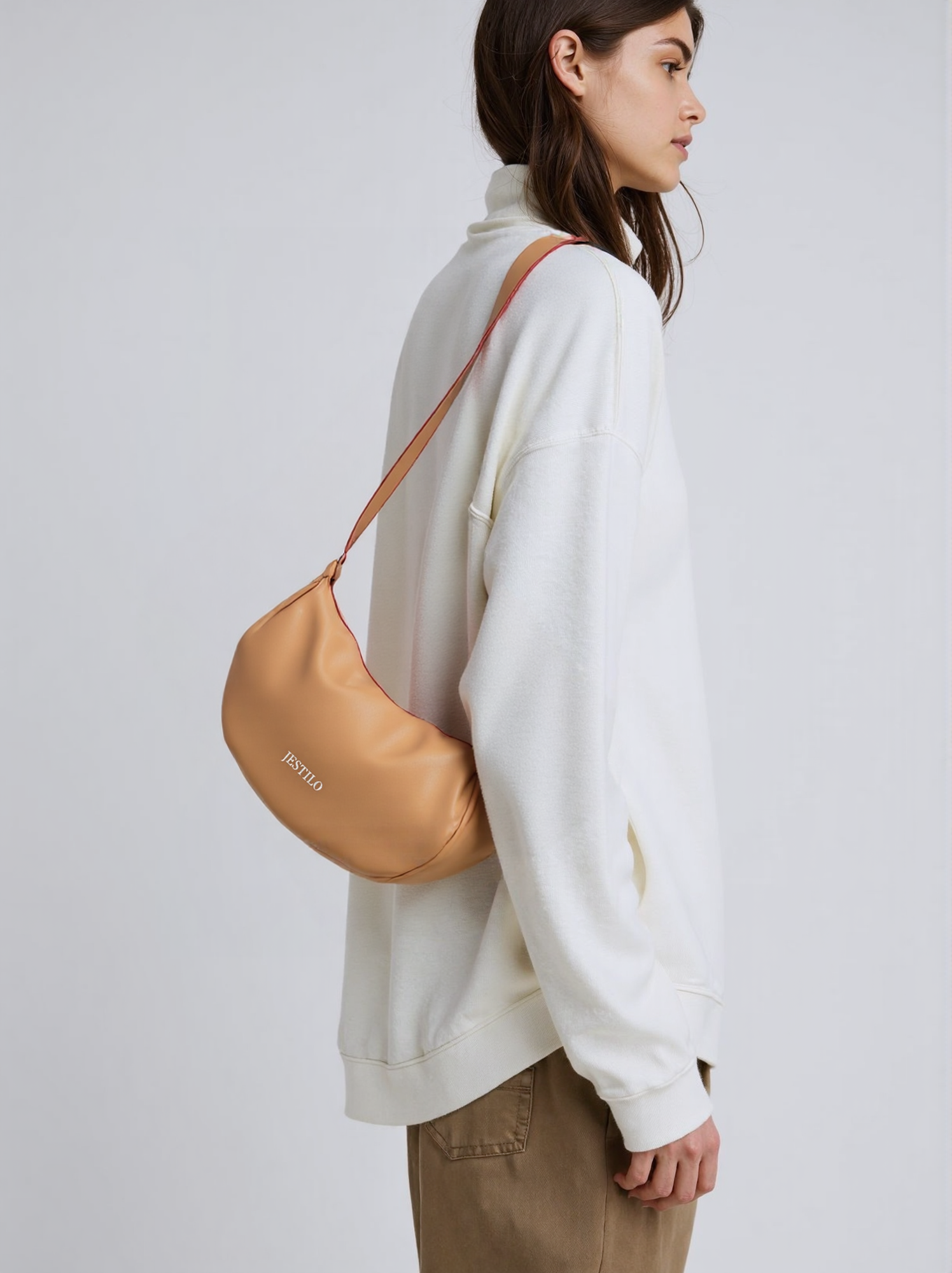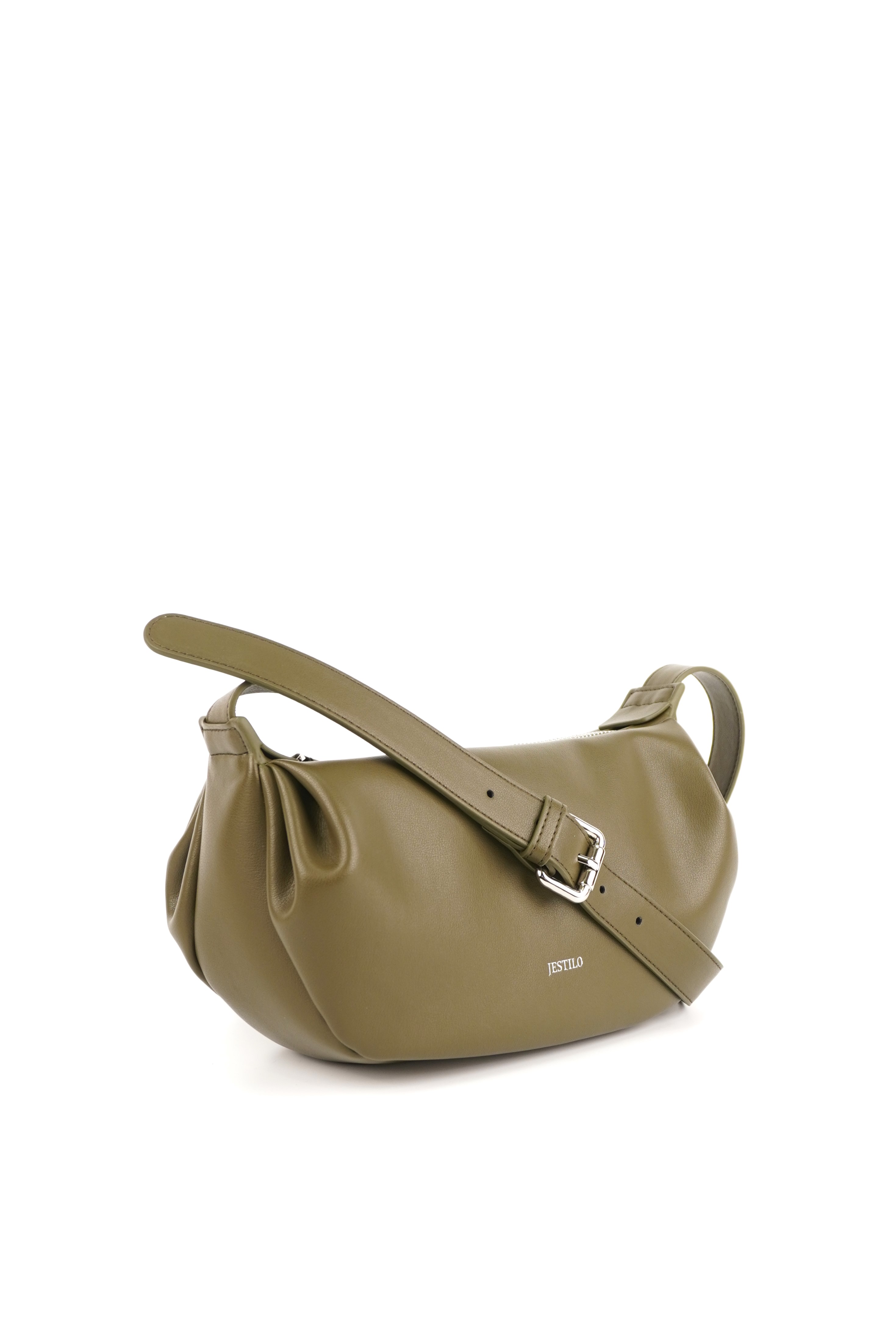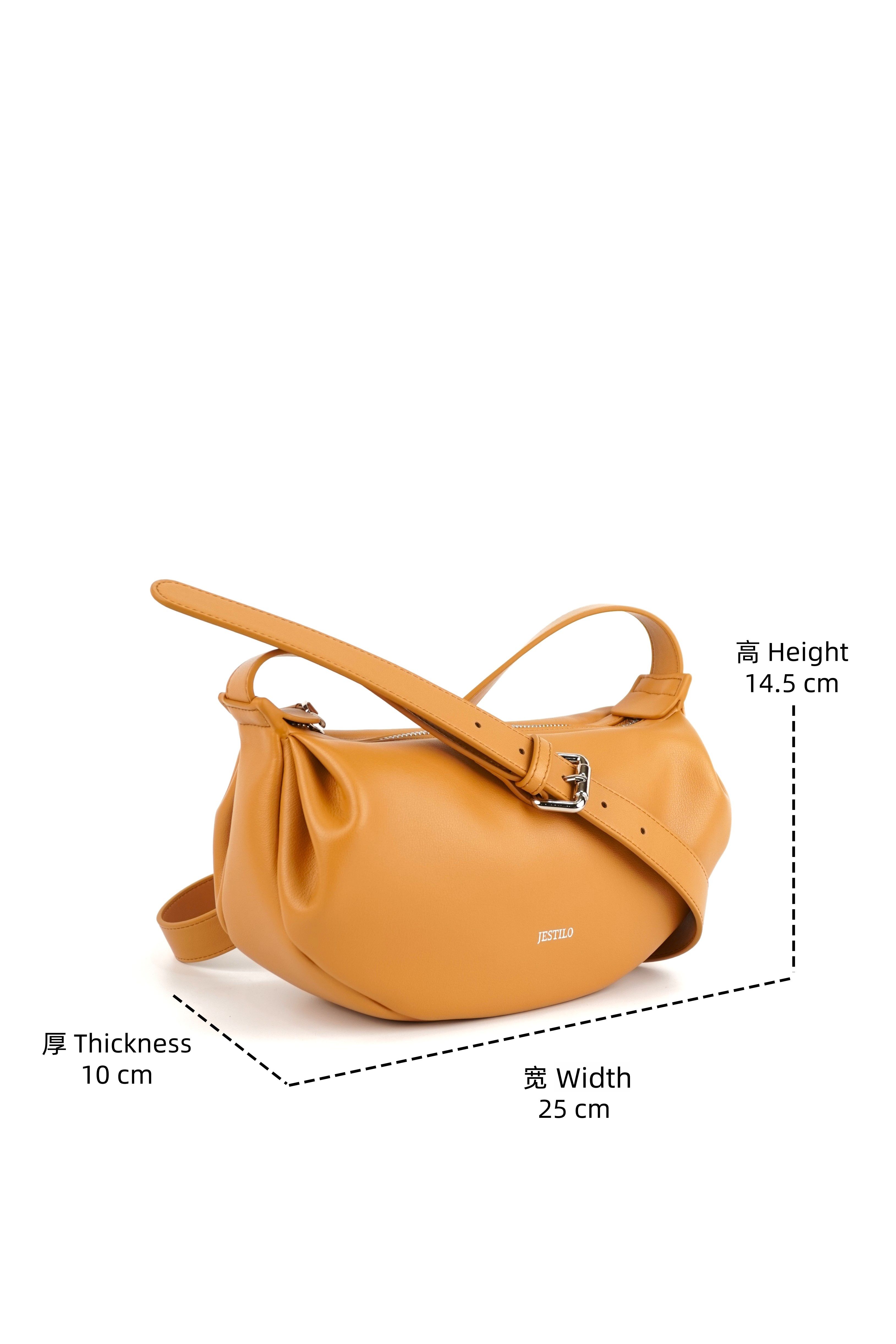 This warm crossbody bag is crafted from smooth, supple cowhide leather, featuring a soft crescent silhouette that adds a relaxed, modern touch to any outfit. The top zipper closure keeps your essentials secure, while the adjustable leather strap allows for a customized, comfortable fit—perfect for all-day wear. Delicate pleated details at the sides lend a gentle, casual charm, and the minimalist branding keeps the focus on the bag’s sleek, timeless design. Ideal for everyday use or casual outings, it balances functionality with effortless style.