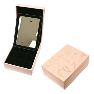 Keep your priceless jewels in this lovely little case. Coming in an adorable design, it showcases a delicate print on its lid to match its all-over pink color for an endearing touch. The case is furnished with multiple compartments for easy sorting of jewelry, and is fitted with a mirror for added versatility. Durability and good protection are guaranteed with its quality material and good craftsmanship. This is a captivating case for your captivating ornaments.