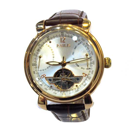 This automatic watch comes with a lustrous round dial with a small skeleton part at 6H position for added style. The rim of the dial features a precise minute scale and a tachymeter for added functionality. The double-rim bezel showcases added exquisiteness.