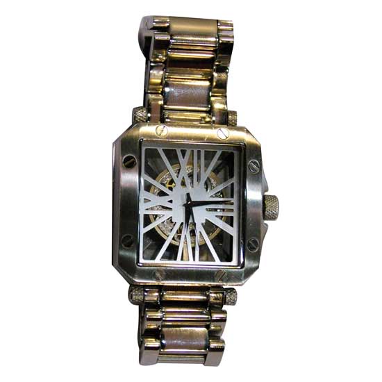 This jeweled-lever automatic watch comes with a matt-finished case adorned with eight screws, expressing a tough design. The skeleton dial features unique Roman numeral silhouettes for an unmatched style. Present this fine automatic watch to your beloved.