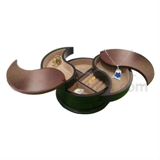 Materials:Outside is MDF with wood paper put high gloss lacquered,Inside used fabric for jewellery.
