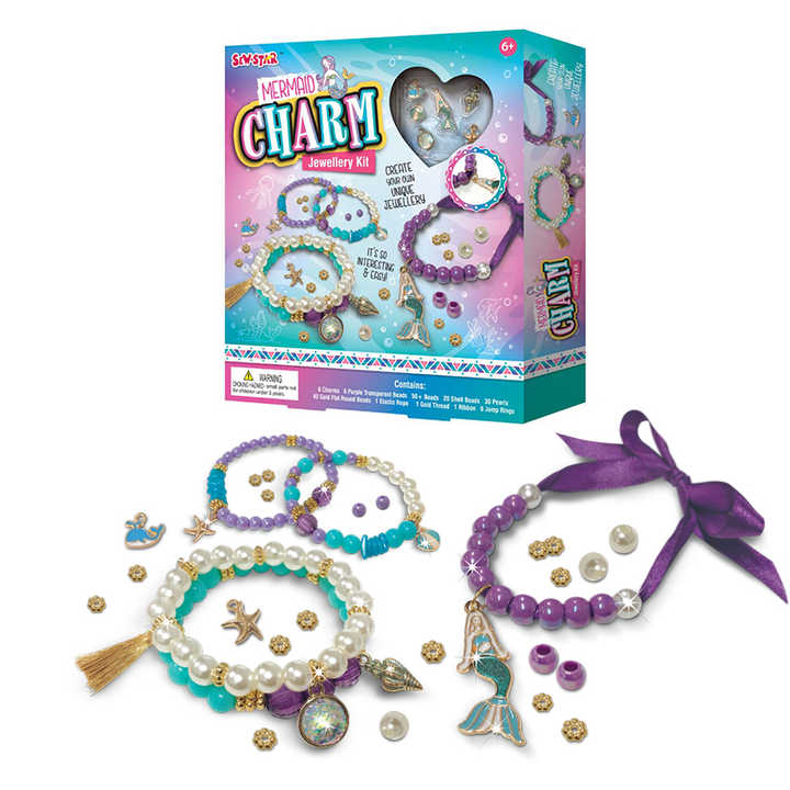 The product includes a vast assortment of high-quality beads in different shapes, sizes, and colors, along with strings and a variety of adornments. It is specially designed for children, featuring materials easy to string together and safe for kids.