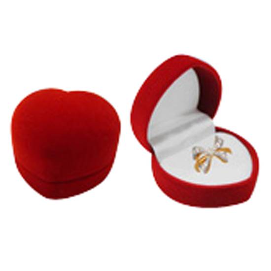 This is a fabric jewellery ring box in the look of a red heart. It has a high grade flocked surface which is soft and gentle to touch. The heart shaped ring box is excellent for the storage and presentation of engagement rings, wedding rings and other rings that are memorable.