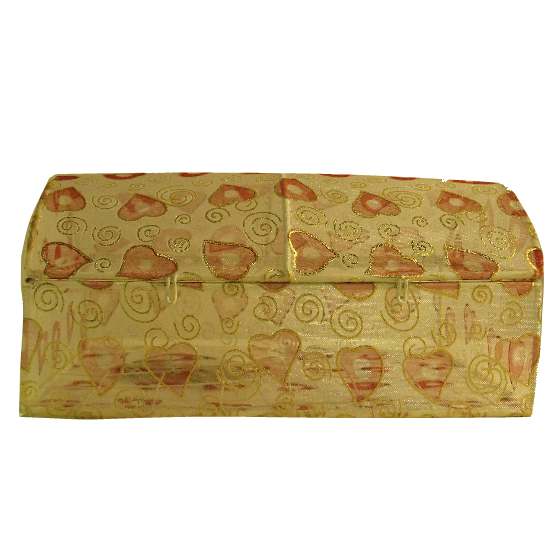 Featured is a jewelry box designed with swirl and heart-shaped patterns. This magnificent jewelry box boasts a flip-open top and the heart-shaped patterns come with golden embroidery. It is an ideal gift for your beloved ones.