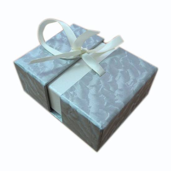 This gorgeous paper jewelry box features a slide-open design. It boasts floral patterns in pink and white colors all over. The ribbon on the front showcases a touch of elegance. Decorate your dressing table and keep your valuable jewelry in place with this gorgeous box.