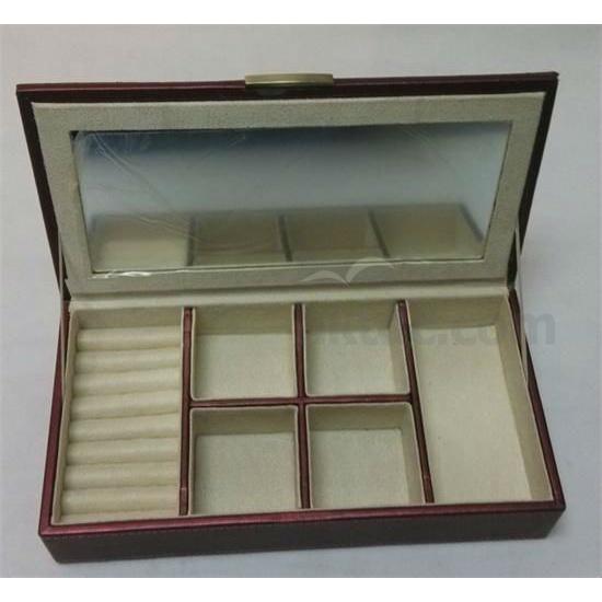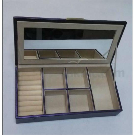 2.The cover inside have a mirror,the 2 sides have ribbons.Box inside have several parts to put different jewelries
