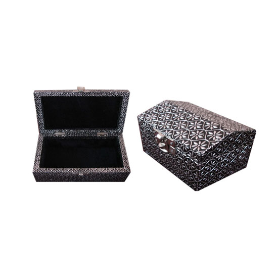 This is a handcrafted jewelry box with an attractive and deluxe appearance. Its exterior is finely crafted with embossed floral patterns for a sense of elegance. This item surely is a great addition to your dressing room.