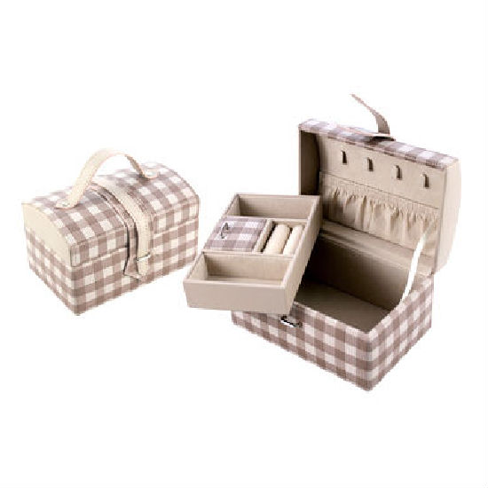 This elegant jewelry box is adorned with allover check patterns. It has a large main compartment and a tray with separate compartments to offer neat and organized storage. It is perfect for storing jewelry and other precious items.