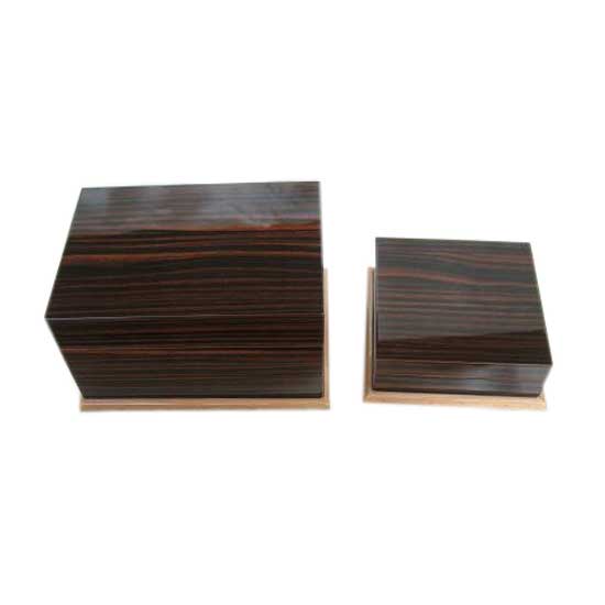 Displayed are two jewelry boxes for jewelry items like rings, earrings and bracelets. Each box boasts an exterior with wooden veins for an antique style. Store your valuable jewels in these dainty boxes.