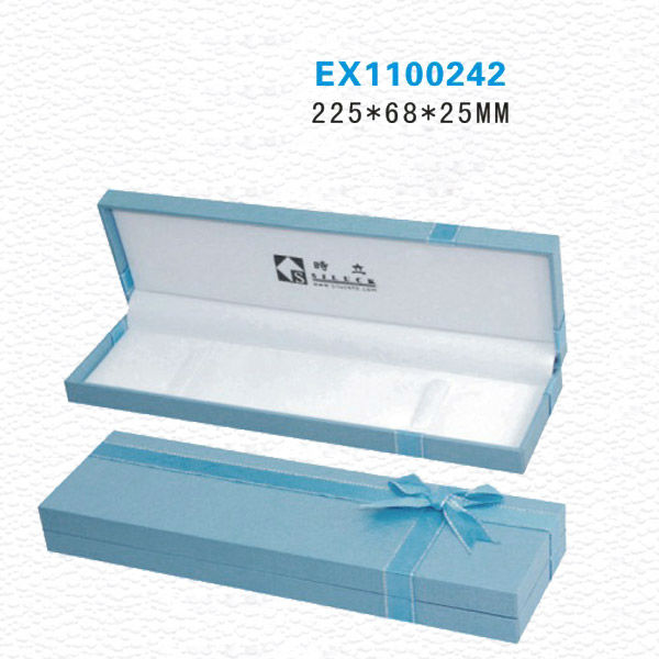 This displayed jewelry box is perfect for cradling bracelets. The box is finely composed with cardboard and canvas. Feel free to have your own logo printed on the box for further brand name promotion.
