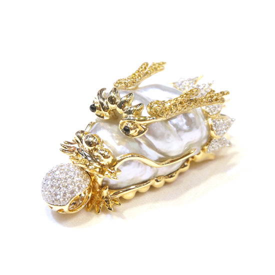 This is a jewelry decoration that is finely made with excellent craftsmanship. It is made of yellow gold and shimmers with a high-gloss finish. This well-designed jewelry decoration blends into any home nicely.