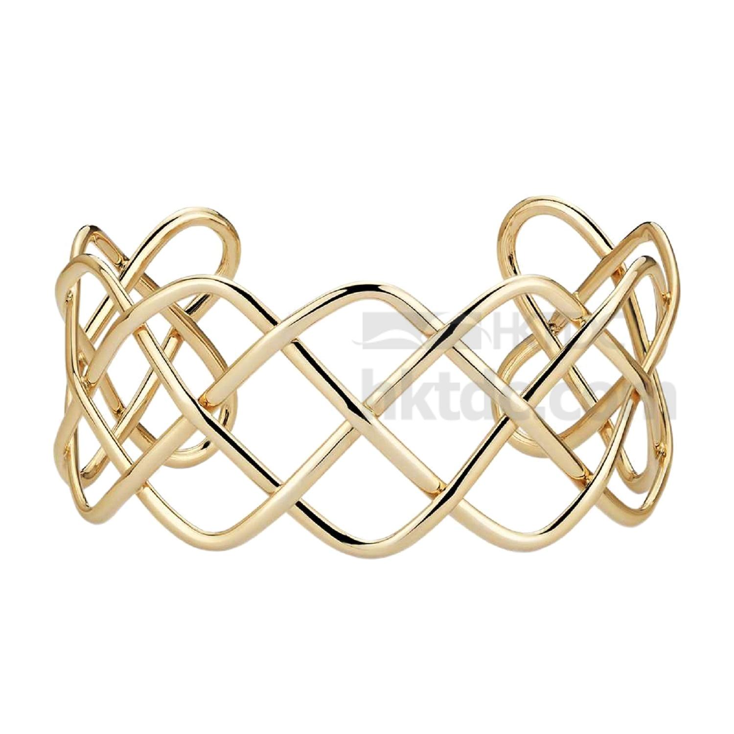 Jewelry Gold Wide Braided Cuff Bangle