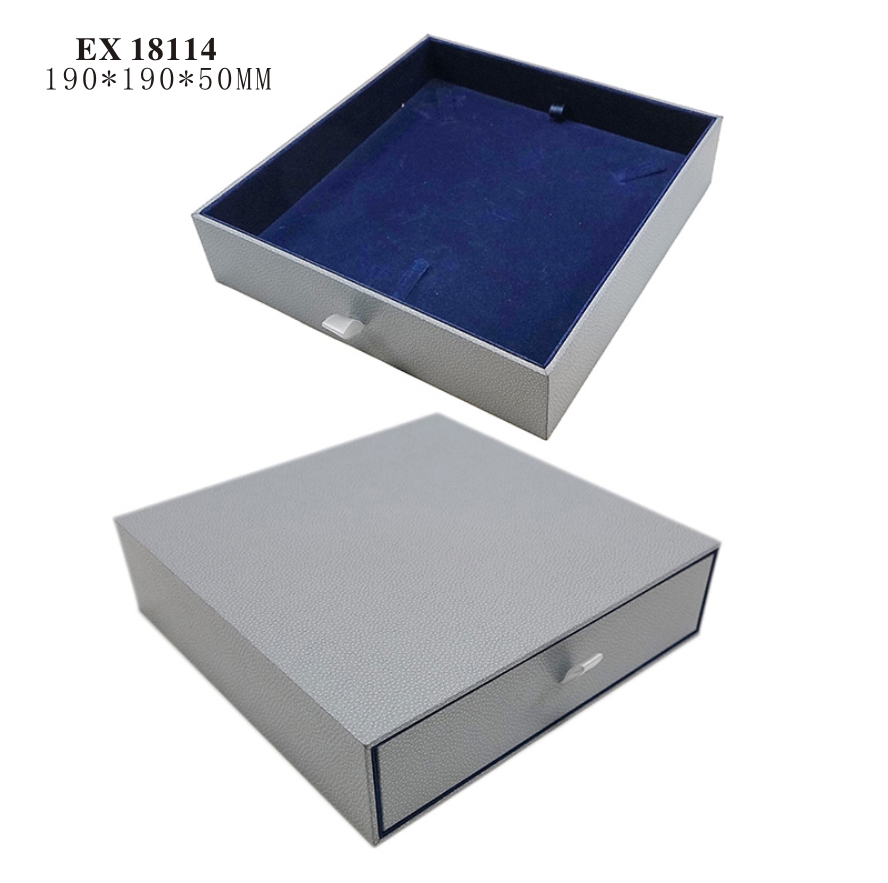 This jewelry box has a flat rectangular body and is an excellent choice for necklace packaging. It has a cushioned tray to prevent scratches and has clasps on the tray for holding jewelry in place. The jewelry box flaunts a high durability and is well-crafted to ensure an exquisite look.