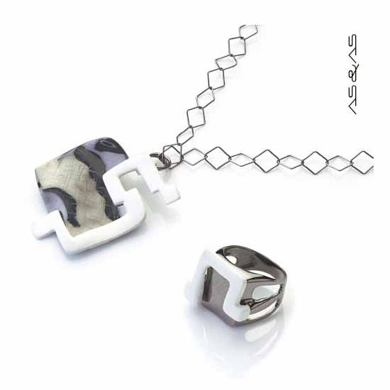 The eye-catching jewelry set includes a necklace and a ring in a unique and creative design. The glamorous design accentuates your evening dresses. The fascinating jewelry set is a perfect gift for ladies.
