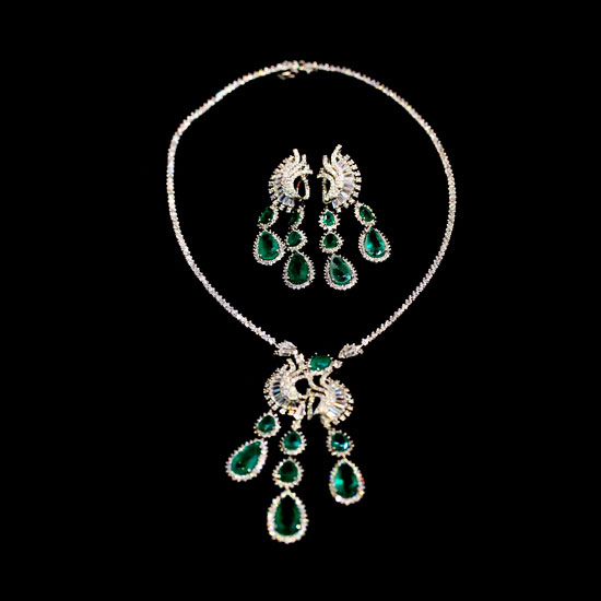This is a pair of jewelry set that comes with a pair of earrings and a necklace. Each piece is highlighted by pear-shaped green stones for added charm. The exquisite stone elements complete this design for a more eye-catching look.