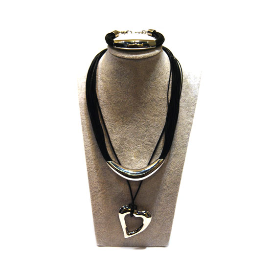 This jewelry set comes with a necklace and a bracelet. The pendant of the necklace is designed in a heart shape for a fashionable look. This well-designed jewelry set is made of quality PU leather and stainless steel for durability.