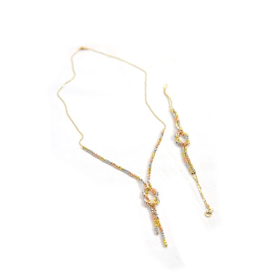 This jewelry set includes a pair of earrings and a bracelet with a matching design. Each piece is made of 22K gold, rose gold and white gold. This refined jewelry set makes an ideal addition to complete your fashion collection.