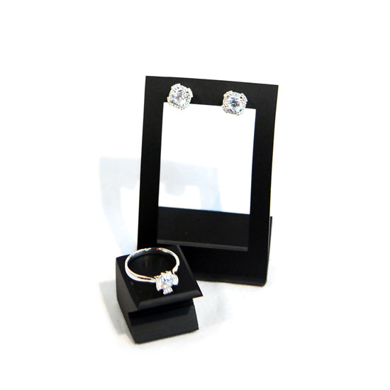 This jewelry set includes a pair of earrings and a finger ring with a matching design. Each piece is accented with shimmering diamonds and small CZ stones for a touch of luxuriousness. This refined jewelry set makes an ideal addition to complete your jewelry box.