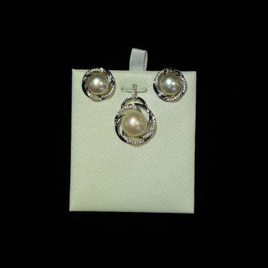 This is a fashionable jewelry set with a pendant and a pair of earrings. It is finely crafted with fresh water pearls and cubic zirconia stones for an eye-catching look. This jewelry set is a great addition to complete your jewelry collection.