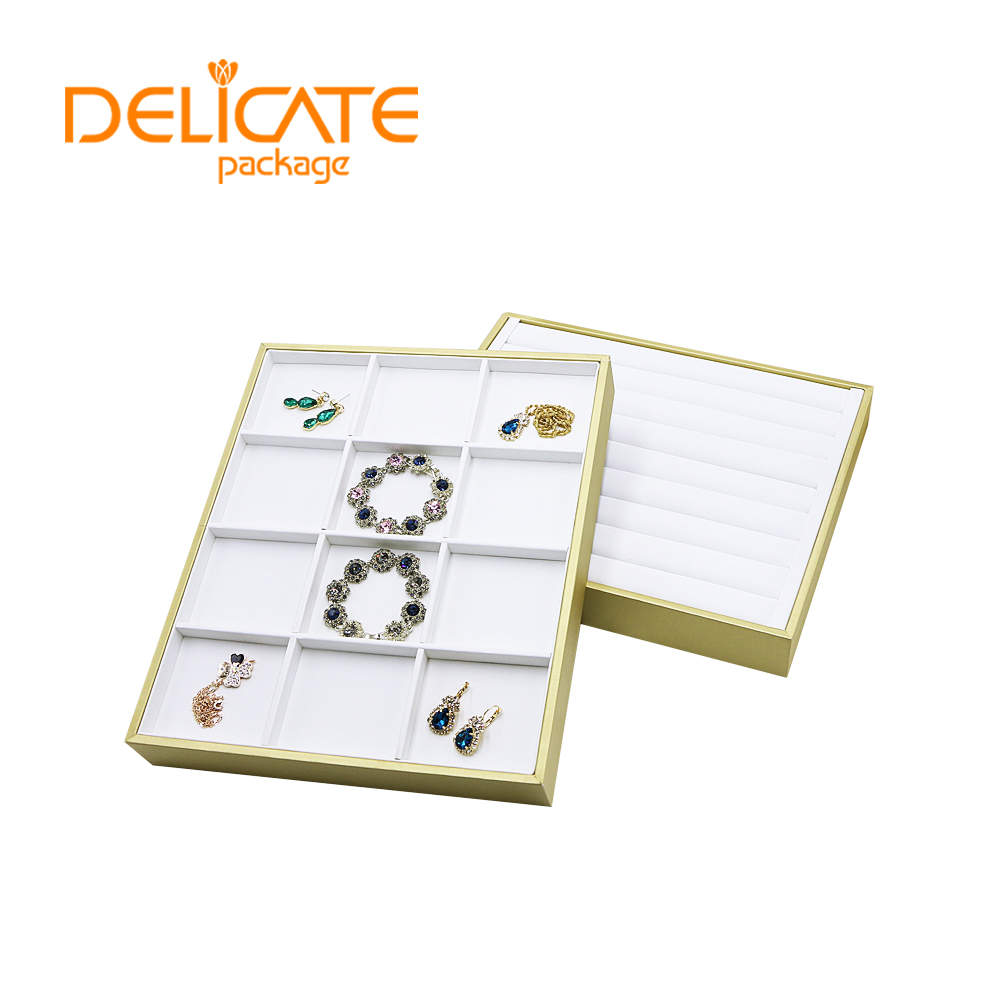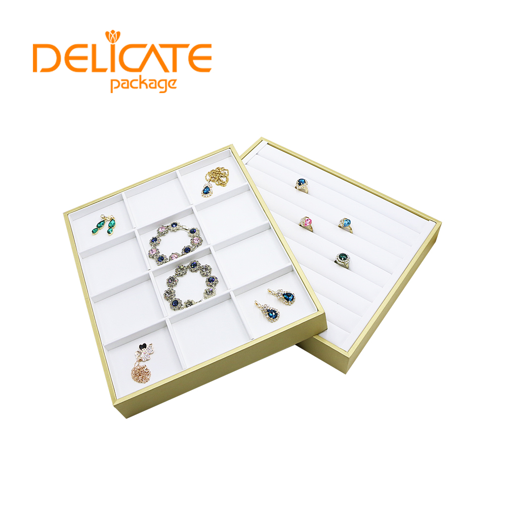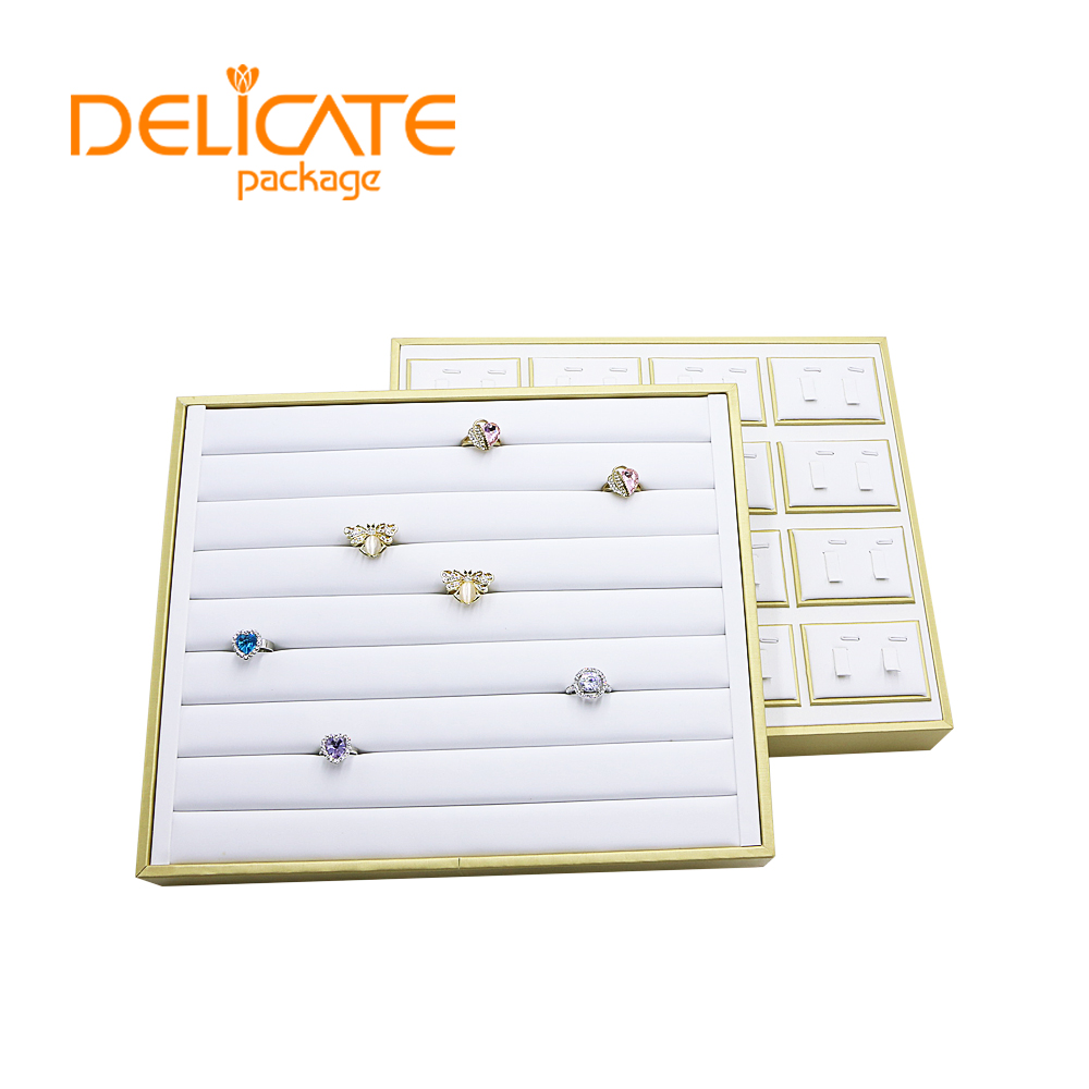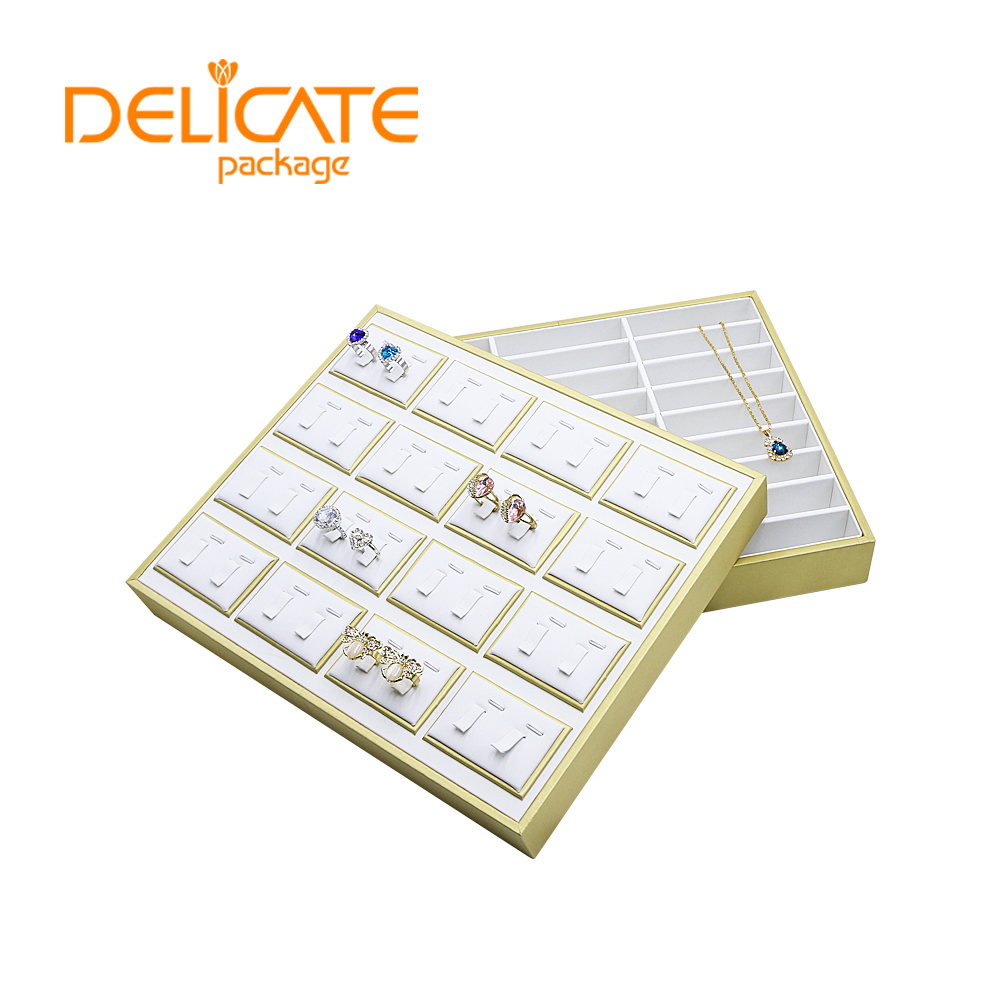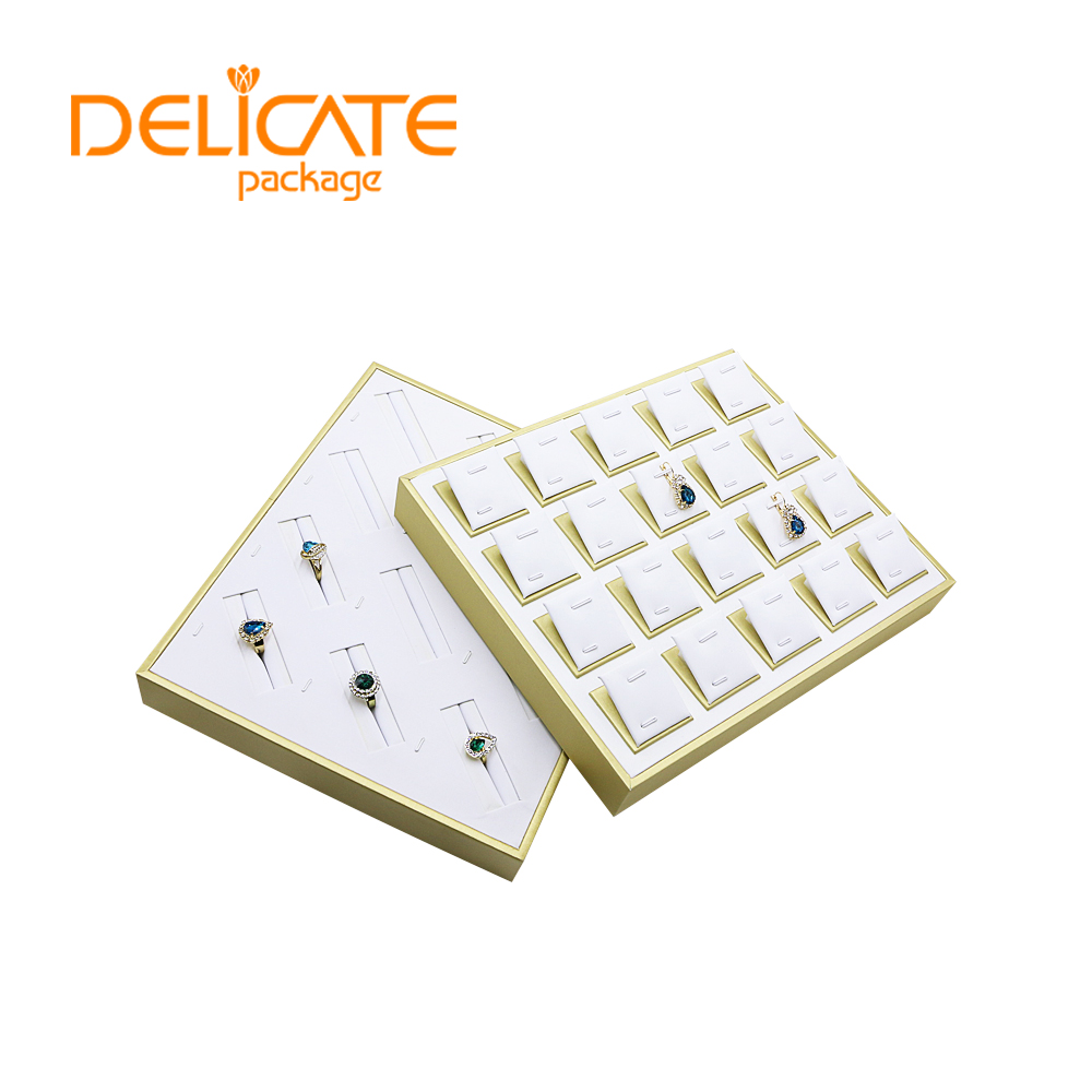 1. Material: high quality MDF with PU leather/microfiber/velvet2.Size: customized3.Color: color can be changed and choose from catalog chart4.Logo: print/stamped/metal logo5.Package: One tray packed into one poly bag #jewelry display#ring display#earring display#pendant display#bangle display#bracelet display#necklace display