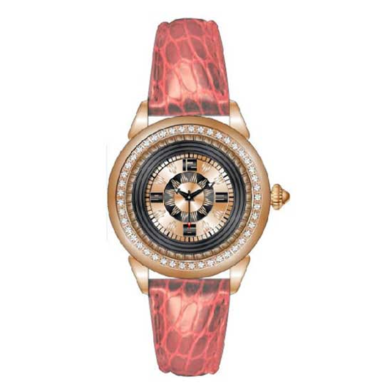 This is a jewelry watch coming with shiny stones encrusted on the round bezel. It is designed with an attractive dial with three hands. The textured leather strap grabs onlookers’ attention easily.