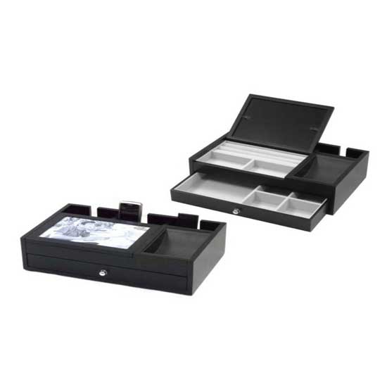 Showcased are a jewelry box and a valet box coming with compartments. Each helps you organize delicate items like earrings, cuff links, tie clips, cards, etc. The exquisite designs simply make the boxes nice for your space.