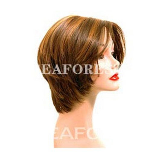 This brownish Jewish wig is accented by bundles of highlighted hair. It features a neck-length design and is styled with long and neat bangs. The wig is great for wearers pursuing fashionable styles.