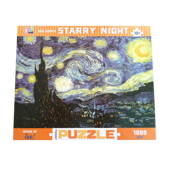 This is a 1,000-piece jigsaw puzzle featuring a painting "The Starry Night" by the Dutch post-impressionist painter Vincent van Gogh. It is well-made for firm interlocking and with vivid colors. Train your patience with this beautiful puzzle.