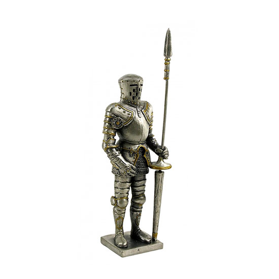 This jousting knight figure is meticulously designed and crafted. The detailed armor and careful finish greatly enhance the air of realism. Add this glorious knight to your figure collection.