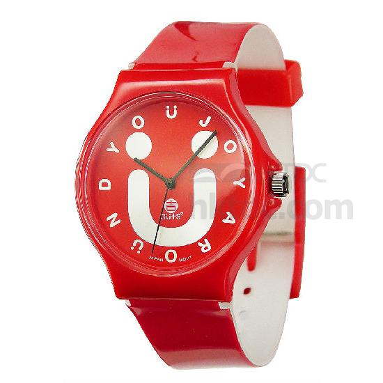 This featured watch is the most popular collection of GUTS Timepiece. In this collection, the twelve letters ‘JOY AROUND YOU’ overlay the twelve scales, with a ‘Ü’ mimicking a smiling face as centerpiece, so that message of happiness can be delivered to the users when they read the watch.