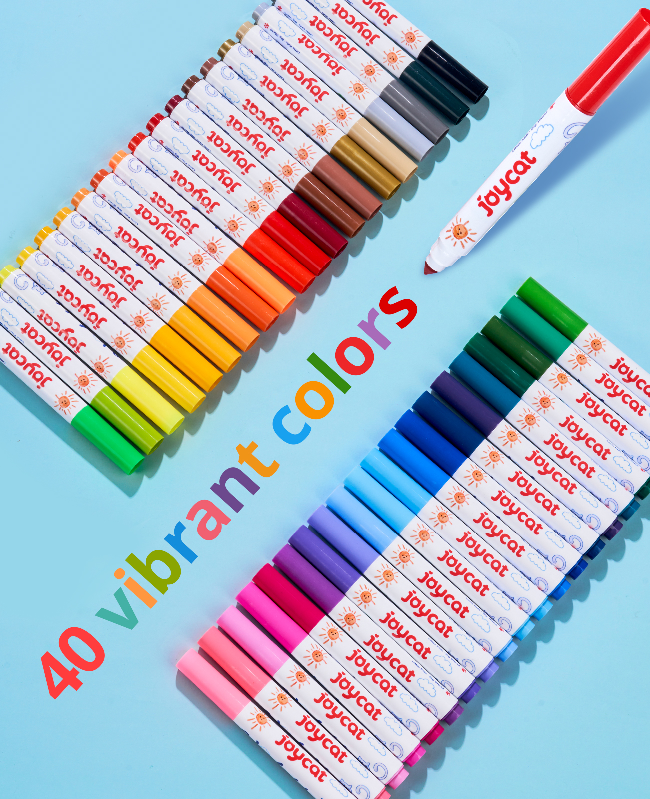 • 【40 HANDPICKED VIBRANT COLORS】Packed with 40 richly pigmented, washable markers in bold, bright shades. Ideal for fueling artistic passion in coloring books, crafts, and everyday creations.